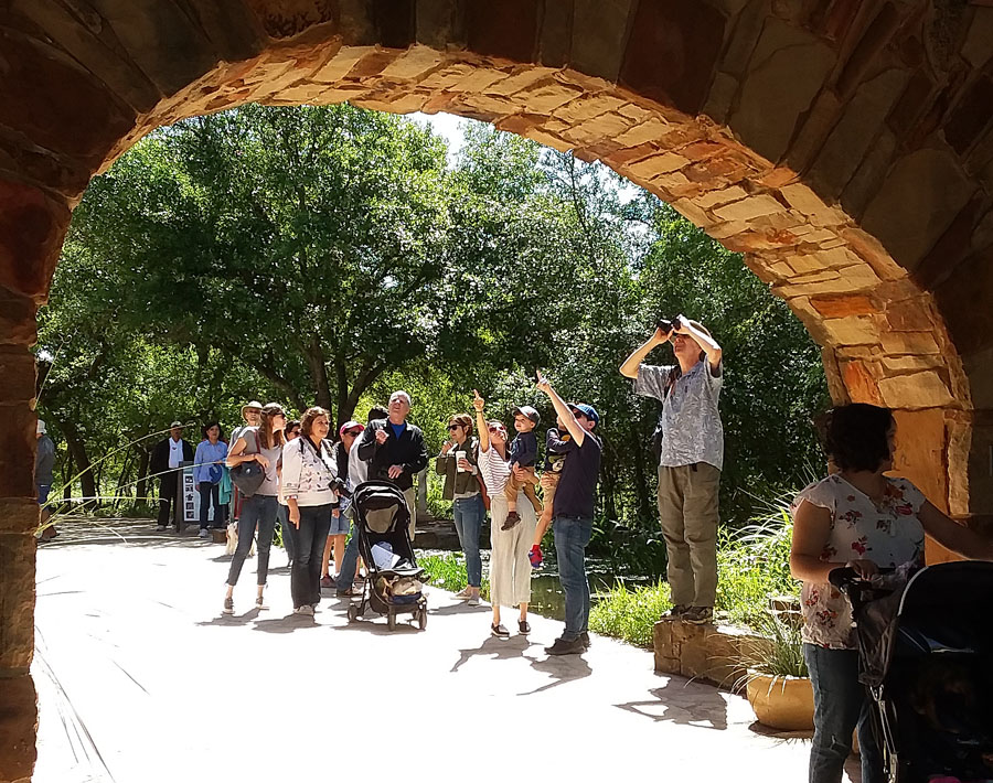 I turned on an app that identified songs of 15 confused birds before the eclipse. At totality, I turned to face downtown Austin. Eerie. Bonus: One of the watchers below wore a T-shirt I like. It said, "I survived SNOVID 2021".