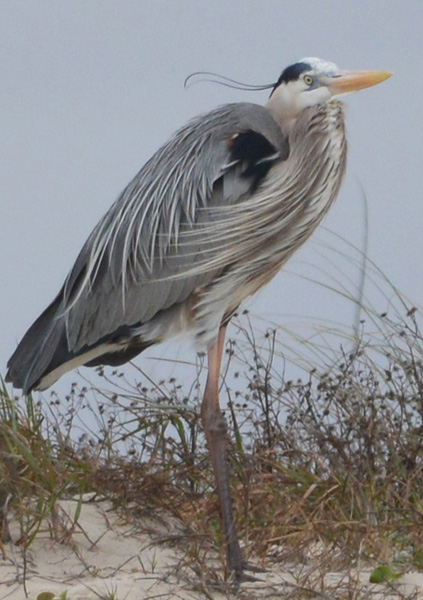 At the Padre Island National Seashore, a great blue heron scanned the surf from the top of a sand dune. I go to PINS several times each year for photography and surf fishing.