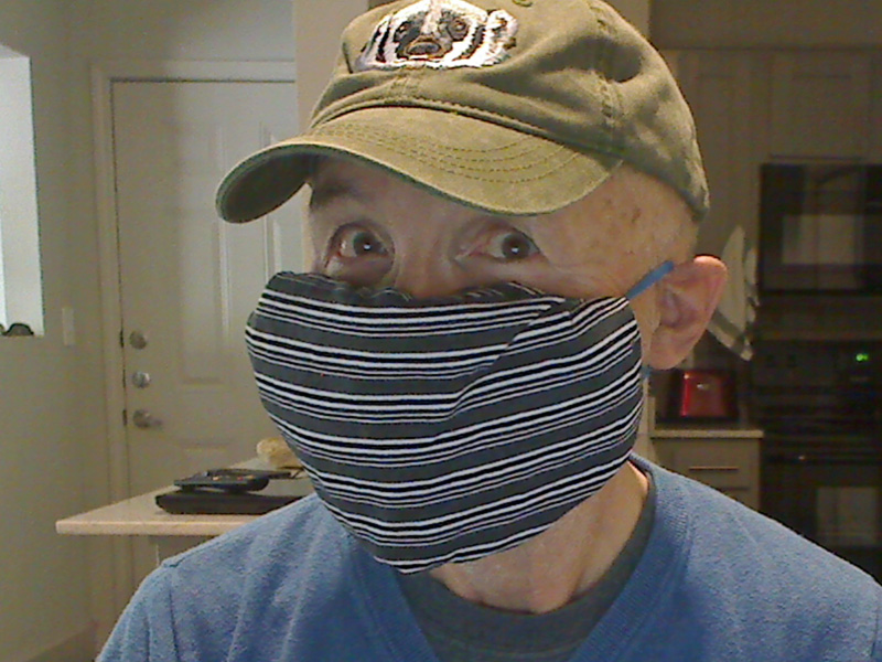I followed the Surgeon General's advice and instructional video. Here's the resulting no-sew mask that I made today. I took a walk wearing it, and I could breathe!