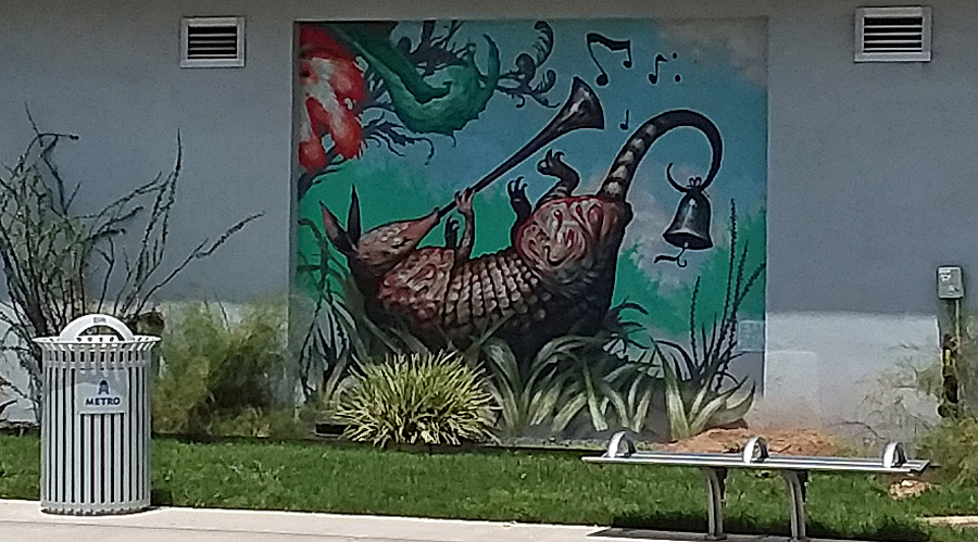 And finally, this bus stop mural pretty much captures the joy of living in Austin.