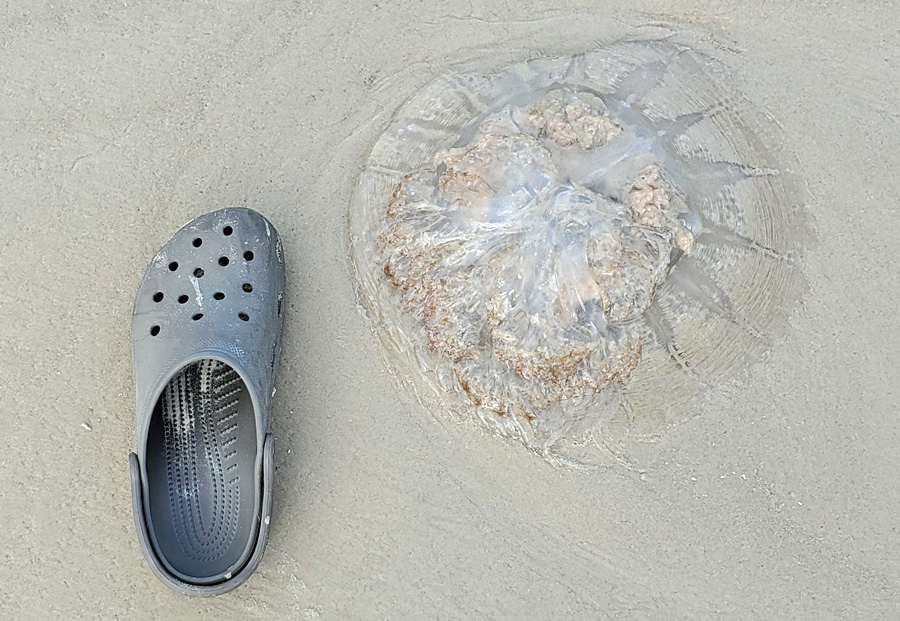 Beachcombing wasn't great on this trip, but I enjoyed my long walk to find this size 13 jellyfish.